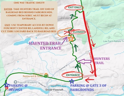 This years Haunted Trail will look a little different getting in and out!! With the HUGE increase of traffic we had last year, we have decided to make this route a ONE WAY ONLY! The town has given us permission to use the Foxcroft Center Rd and the Landfill Rd for one night for this event which should help alleviate any traffic jambs!! Please follow all signage!!